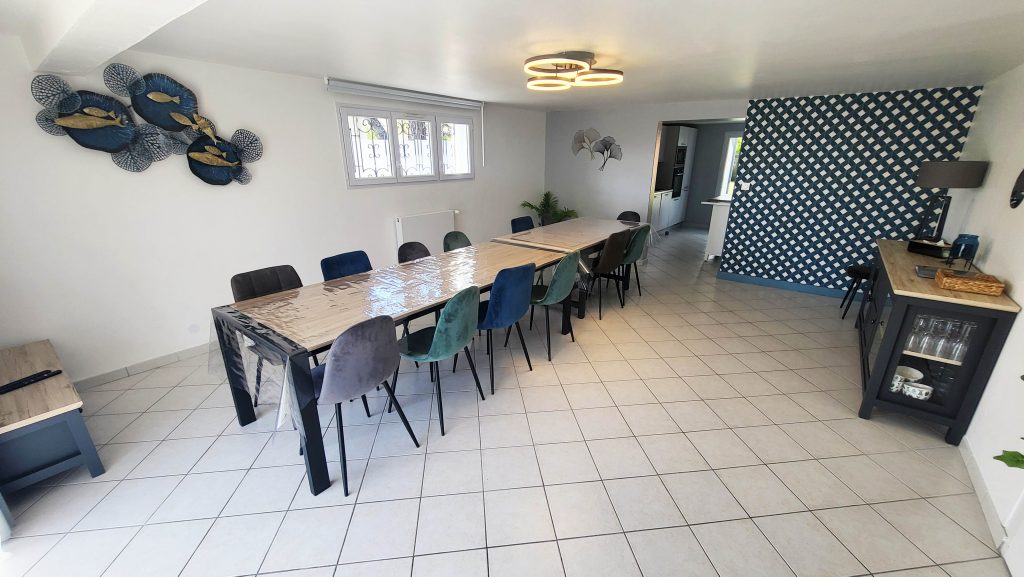 Des couleurs apaisantes, la fenêtre donnant sur le jardin et un lit en 140×190, cette chambre est très reposante et chaleureuse. Les oreillers, la couette et le dessus de lit sont fournis.